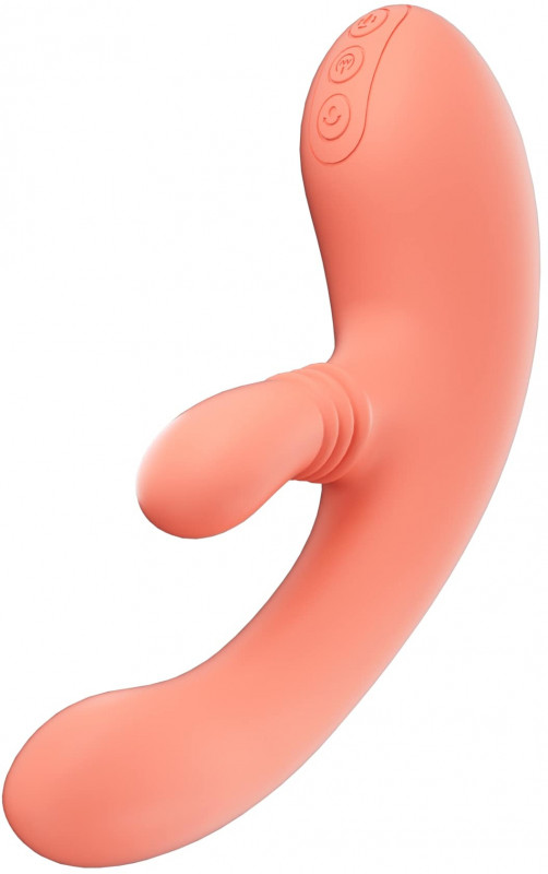 Верхняя кнопка отвечает за включение манящих движений на клиторальной части, нижняя за пульсацию в вагинальной.